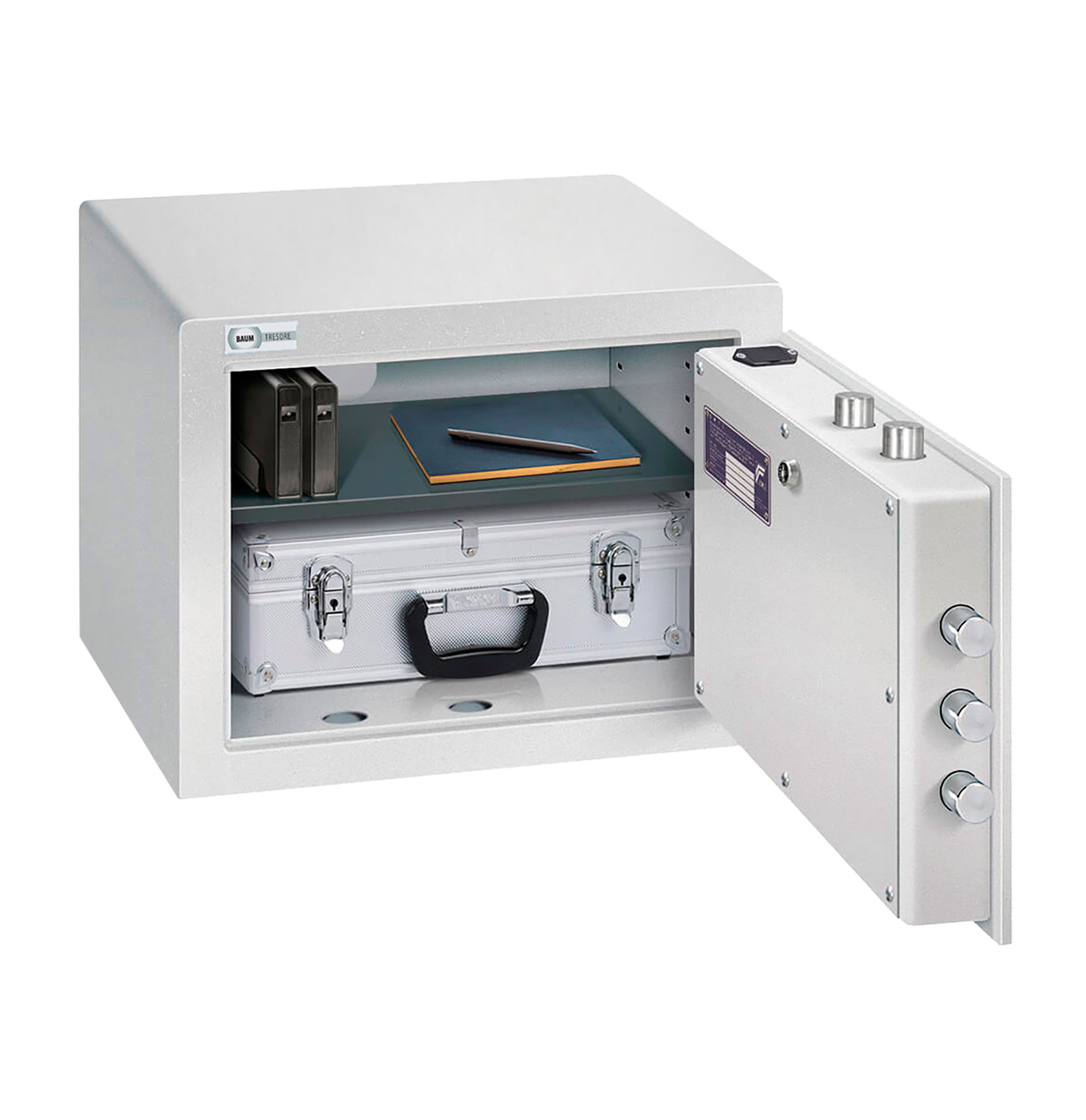 Der umlaufende Feuerfalz sichert vor leichtem Brand. Gegen Diebstahl sind alle Tresore für eine doppelte Verankerung in der Rückwand und im Boden vorbereitet. Wahlweise liefern wir den Tresor mit elektronischem Tastenkombinationsschloss oder Doppelbart-Sicherheitsschloss.